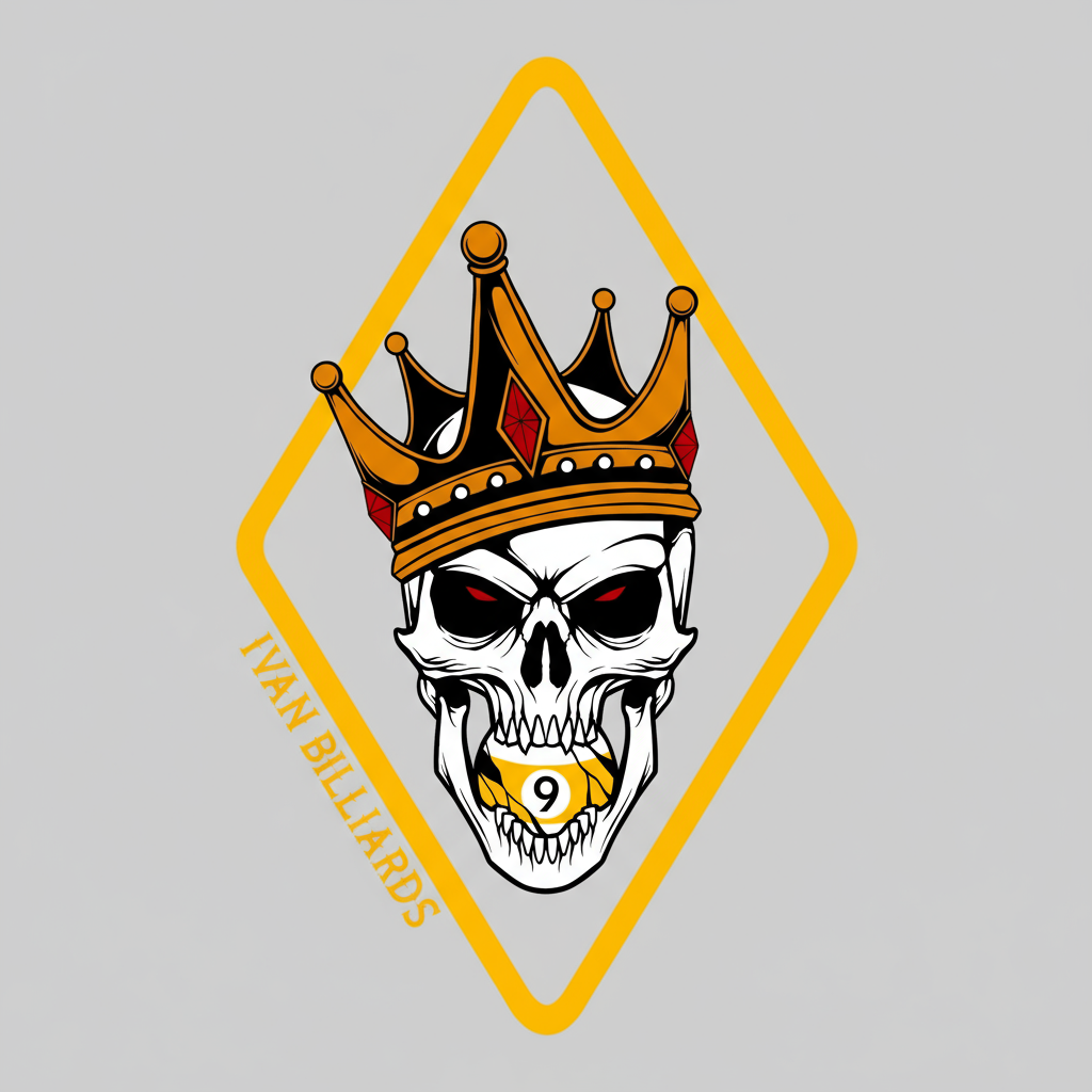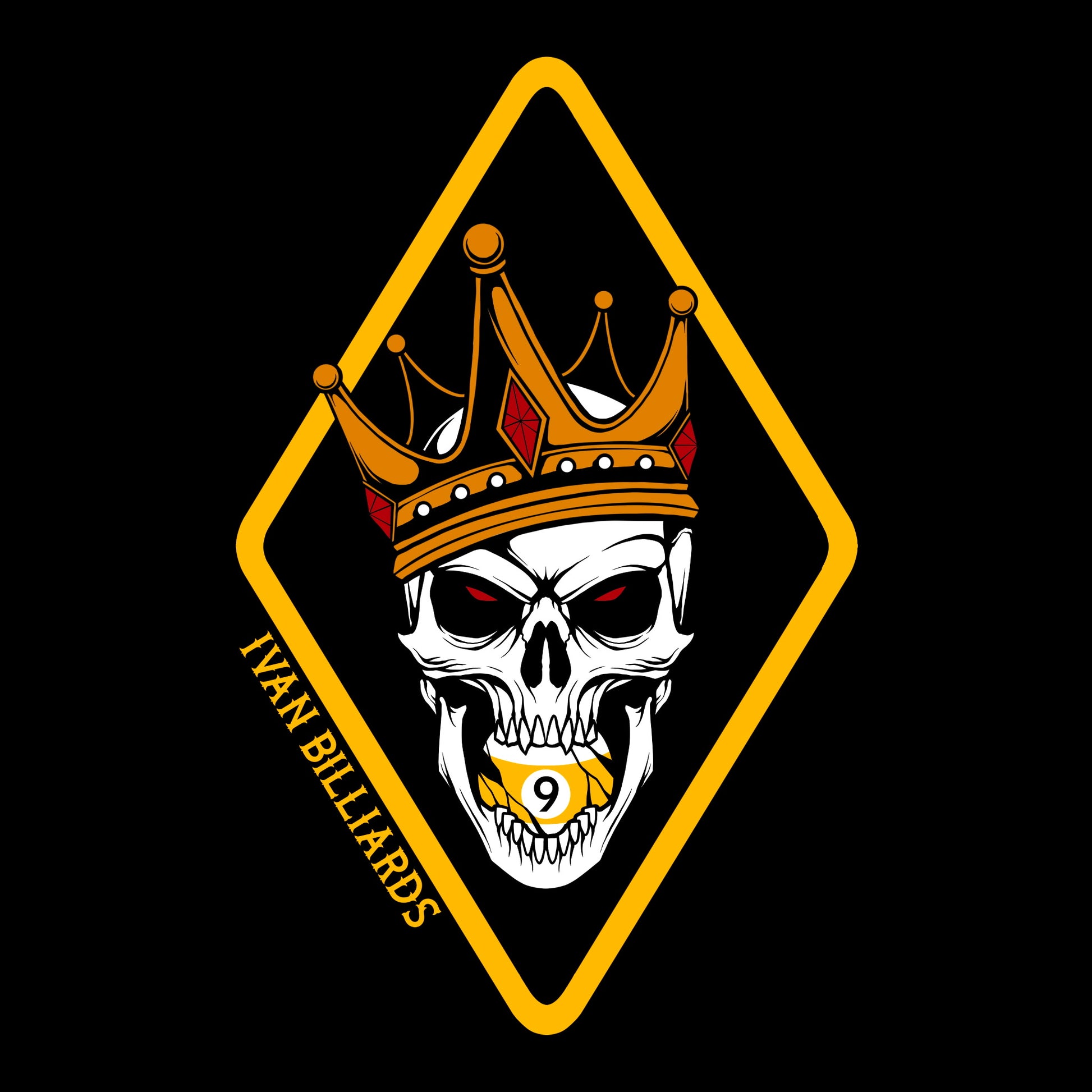 Ivan Billiards "Skull 9" soft cotton/polyester blend T-Shirt. Design on back and Ivan Billiards logo on front left chest.